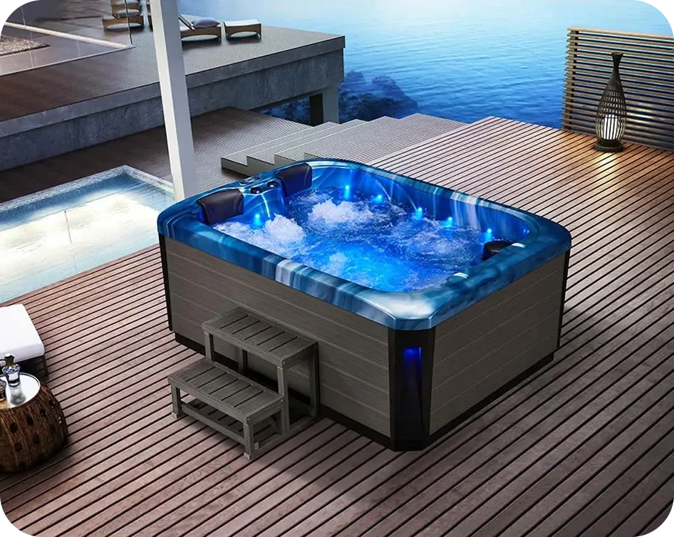 Elevated spas, vanishing edge spillways, and sculptural forms