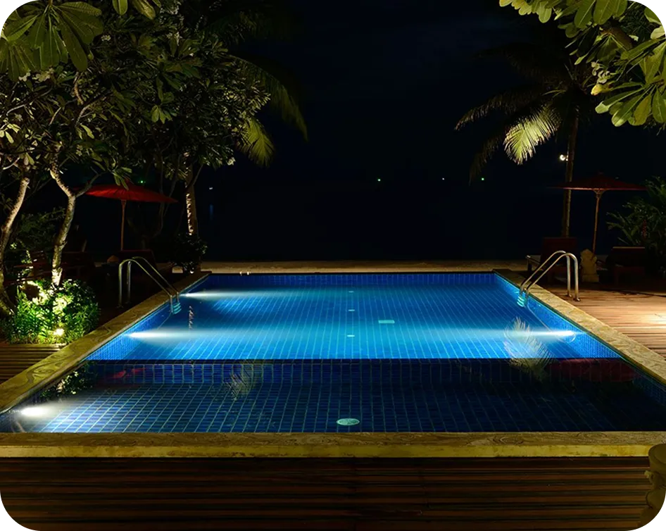 Ryan created the perfect pool—fun for kids by day and stunning at night with beautiful lighting.