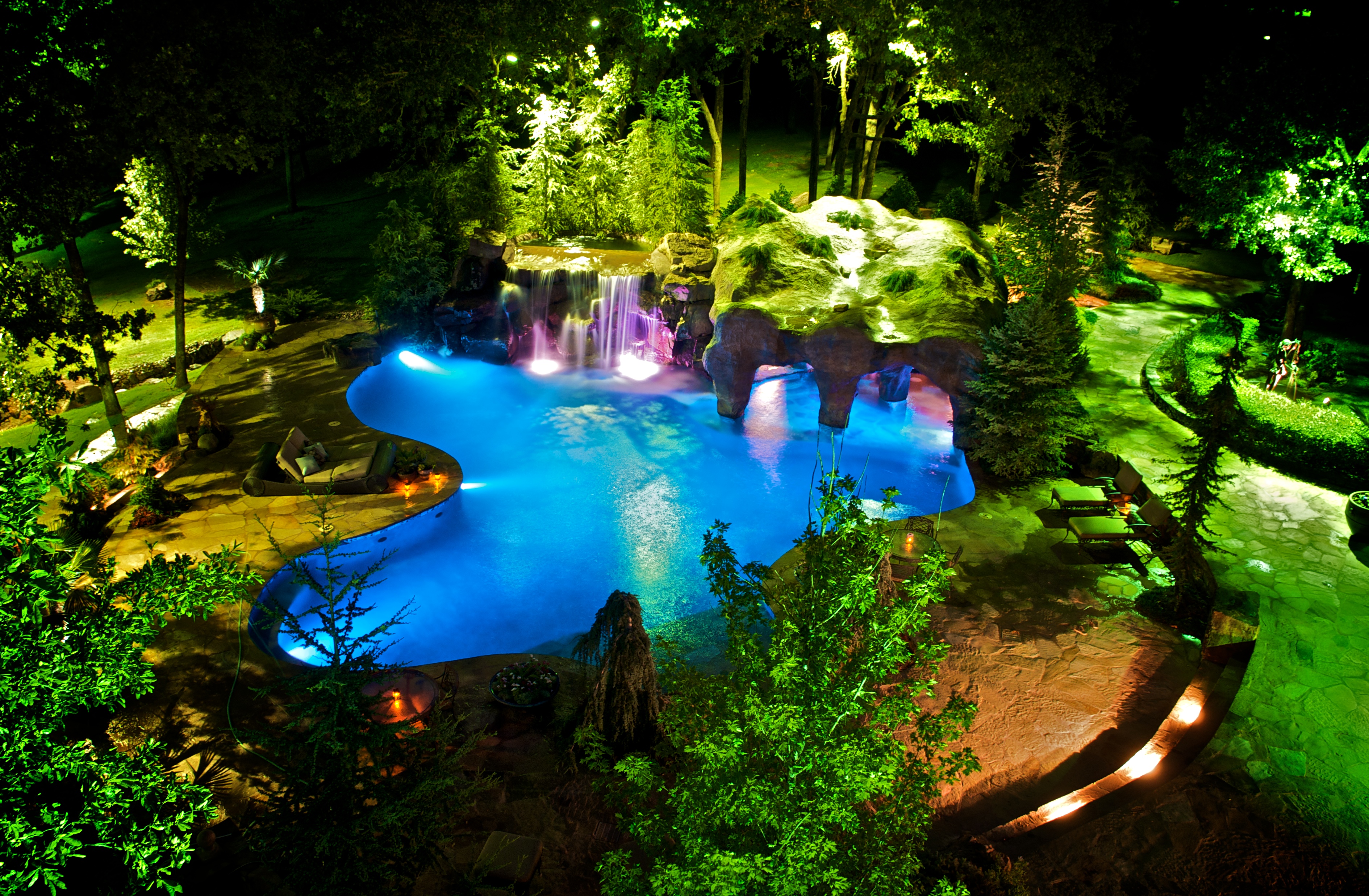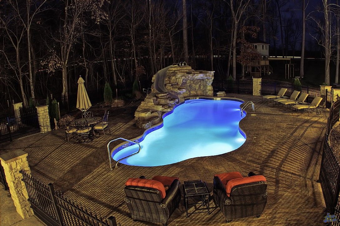 Ryan created the perfect pool—fun for kids by day and stunning at night with beautiful lighting.